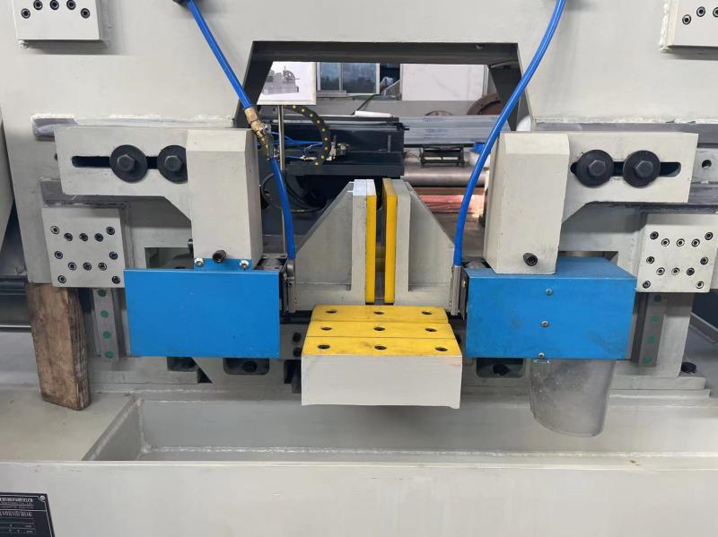 The unit is composed of the sawing machine host, hydraulic station, electric control cabinet, automatic chip removal machine, aluminum chip collection box, lifting and feeding device, front material frame, fixed length trolley mechanism, rear discharge frame, full protective cover of the sawing machine host, etc.